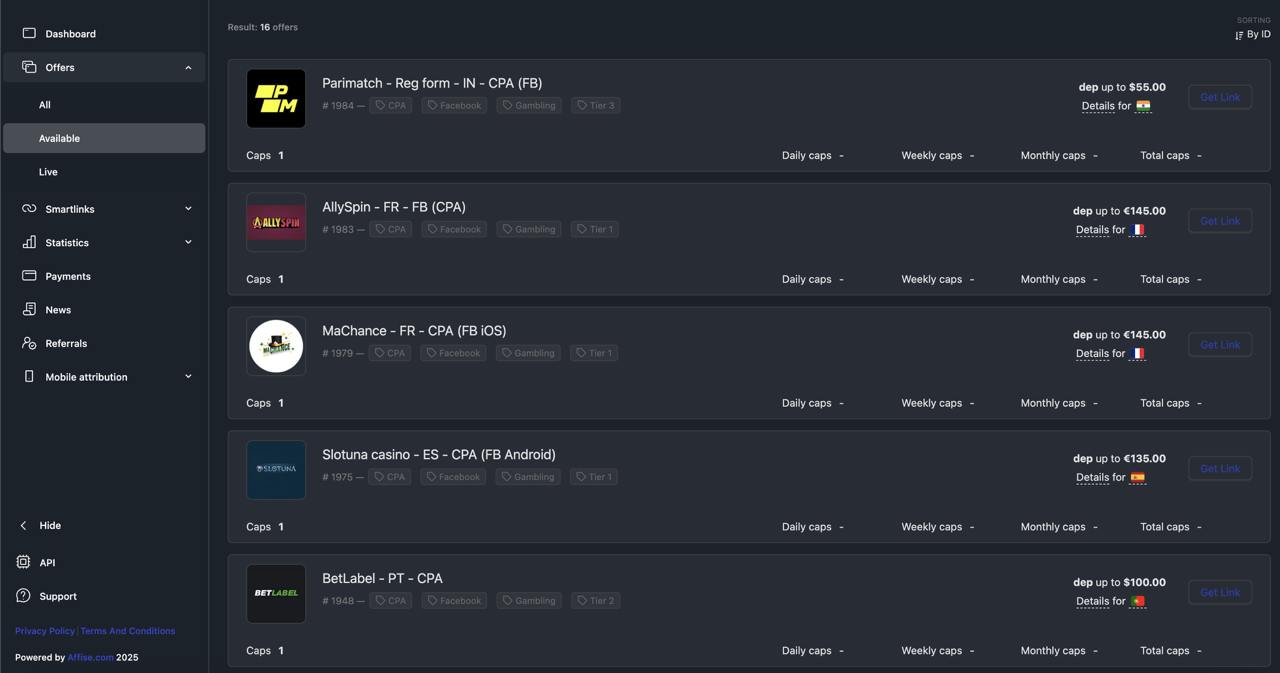 - большой выбор iGaming продуктов - партнерская сеть имеет более 1000 продуктов от локальных и международных брендов, так что вы точно подберете что-то выгодное под ваш тип трафика;